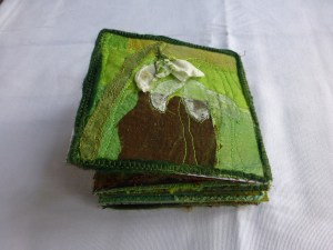 First Signs Book Art and the first sign of spring on the dark earth: the emergence of the snow drop! a meander book using a collage of fabric, felt and paper 15x15cm 2014