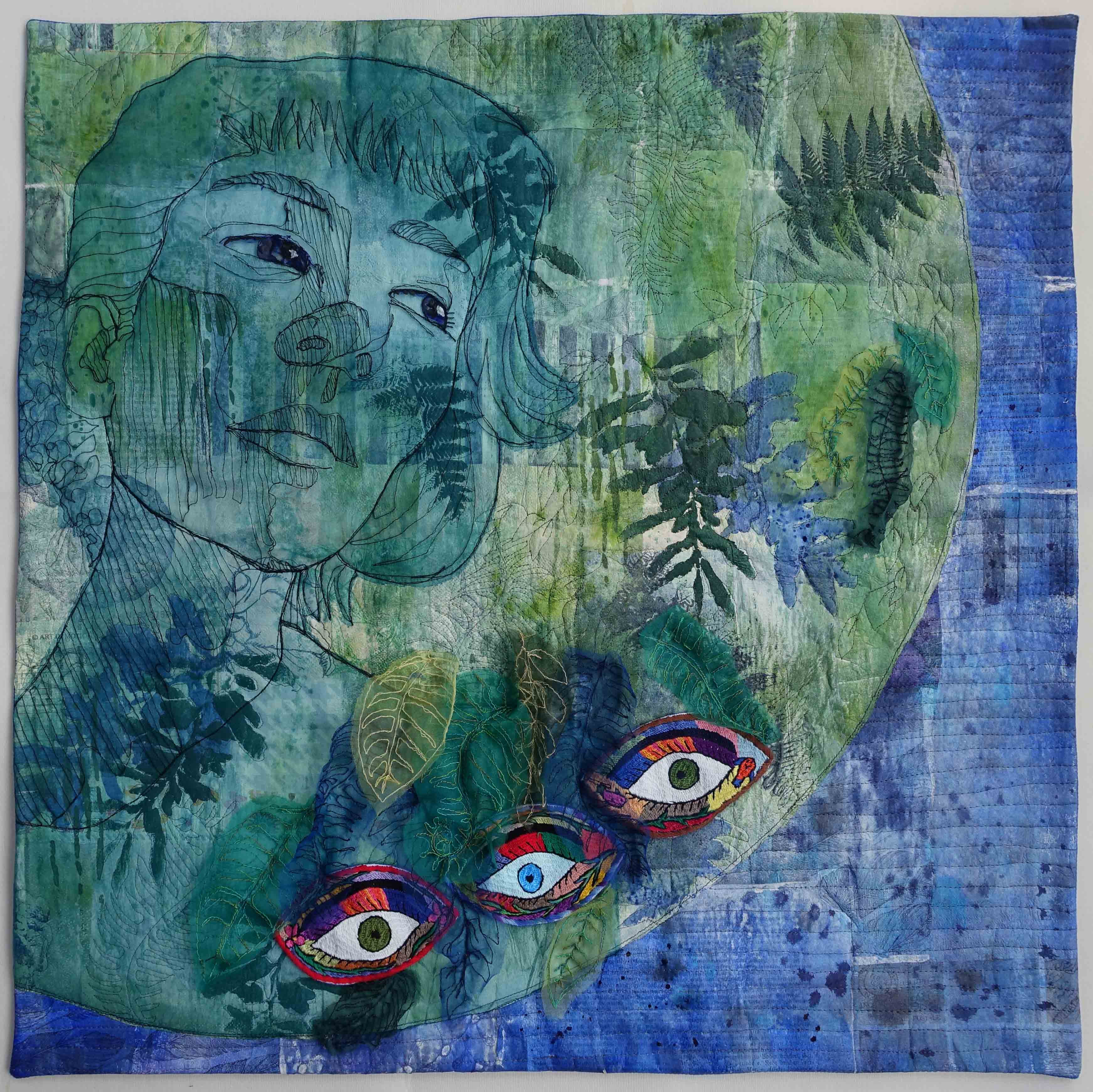 A piece for the exhibition from the German-Afghanistan Initiative, theme “keep your eye on the planet” using hand embroidered “eyes” from the women in Afghanistan.