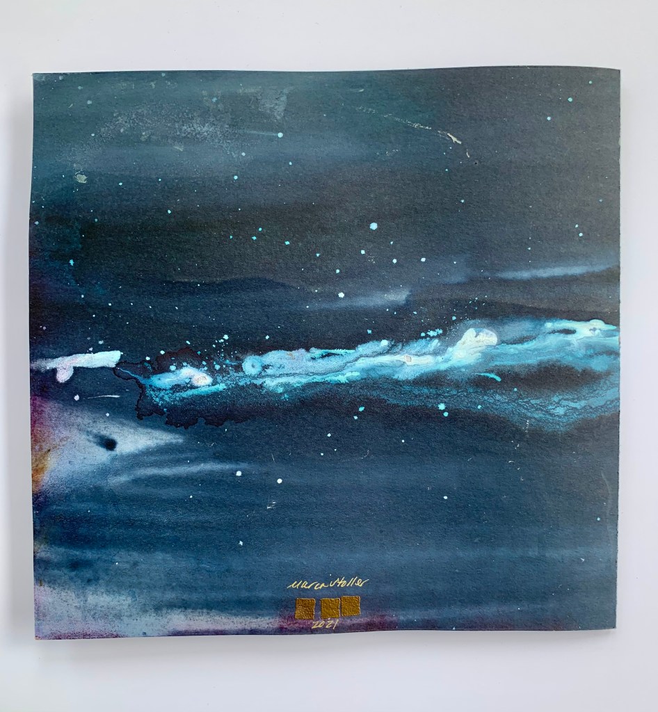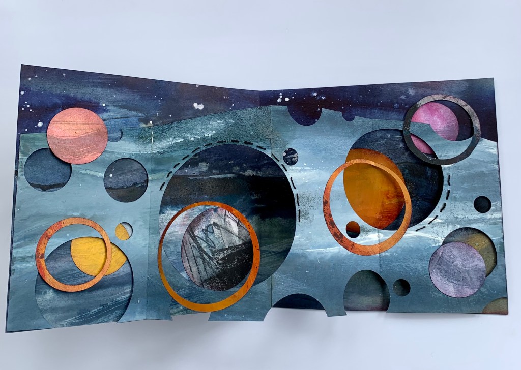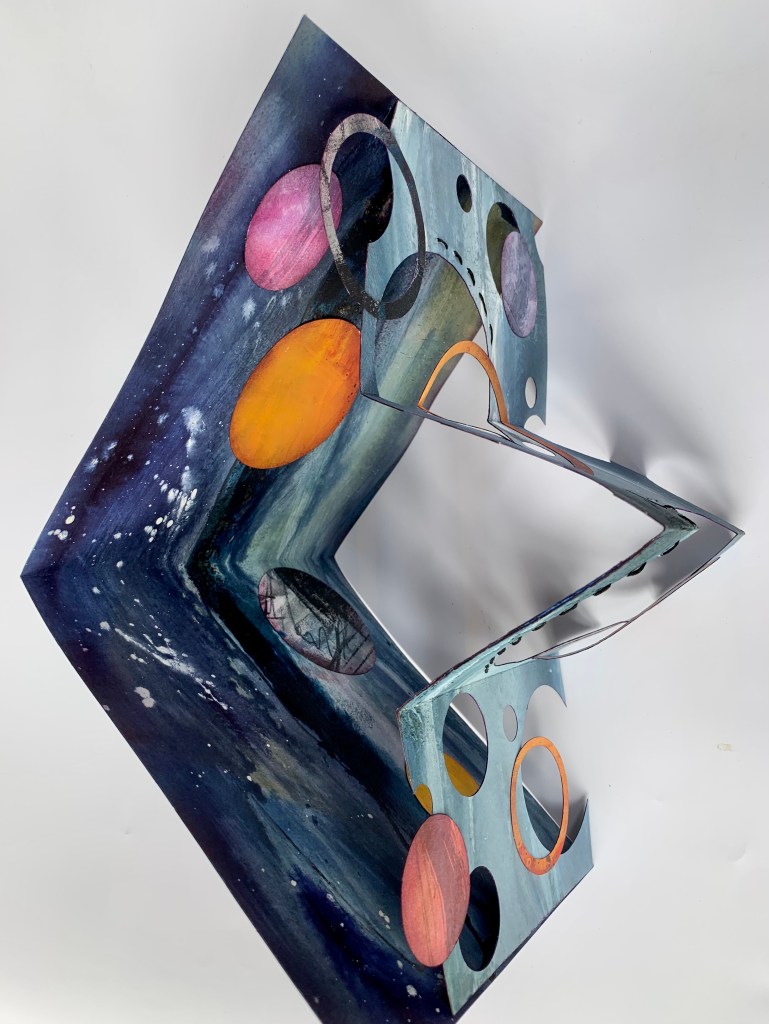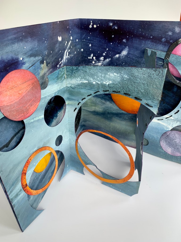 Playing with Saturn’s rings in another popup variation. Acrylic painting on an old watercolor.