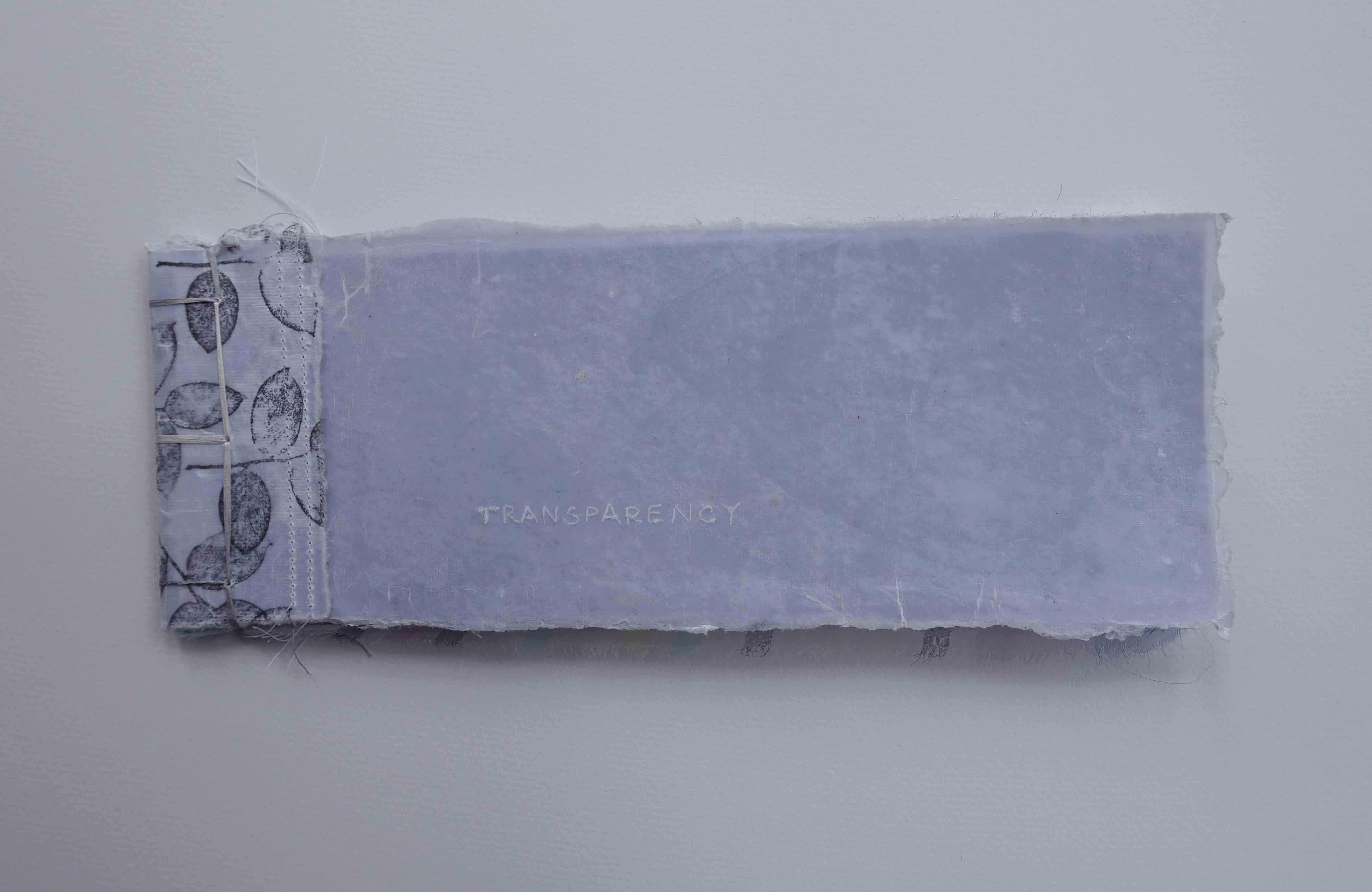 Exploring transparency, I found myself on a very interesting journey. The transparency of paper and fabric are better recognized when layered. What is behind plays a large role in how transparent the piece appears. Manipulation, sewing, paint and wax do much to change the degree of lucidity.